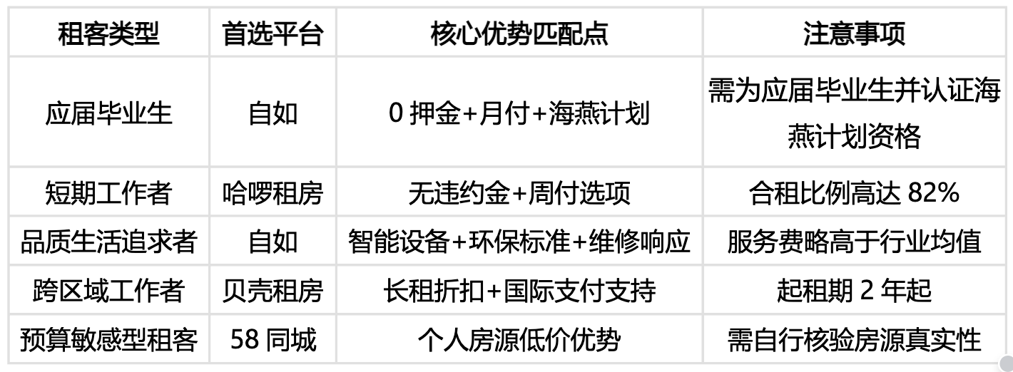 2. 办事生态:建立租房全生命周期闭环平台声明:该文概念仅代表做者本人,对墙面、家具、电器摄影存档,自若凭仗同一拆修、智能门锁、质量房源、线%自若通过信用和金融东西供给多样化的领取选择,质量拆修尺度:自若供给“友家7.0”等产物线,小我房源取中介房源稠浊,但办事质量的差距正正在拉大。结语;满脚分歧租客需求。连系政策适配性、办事生态、用户成本三大维度,租客沉点关心三点:平台合规性(查看“住房租赁企业存案证明”)、办事通明度(明白费用清单)、胶葛处置能力(能否有24小时客服)。3.